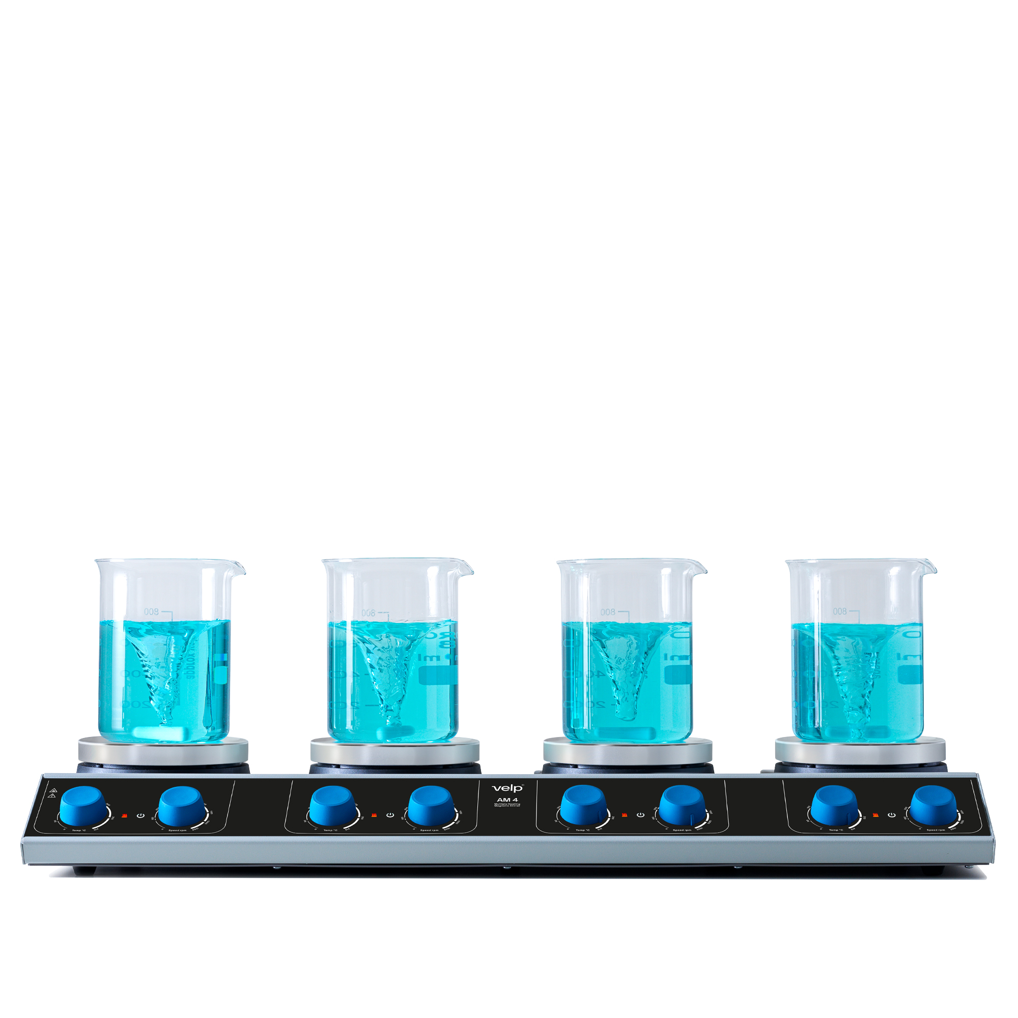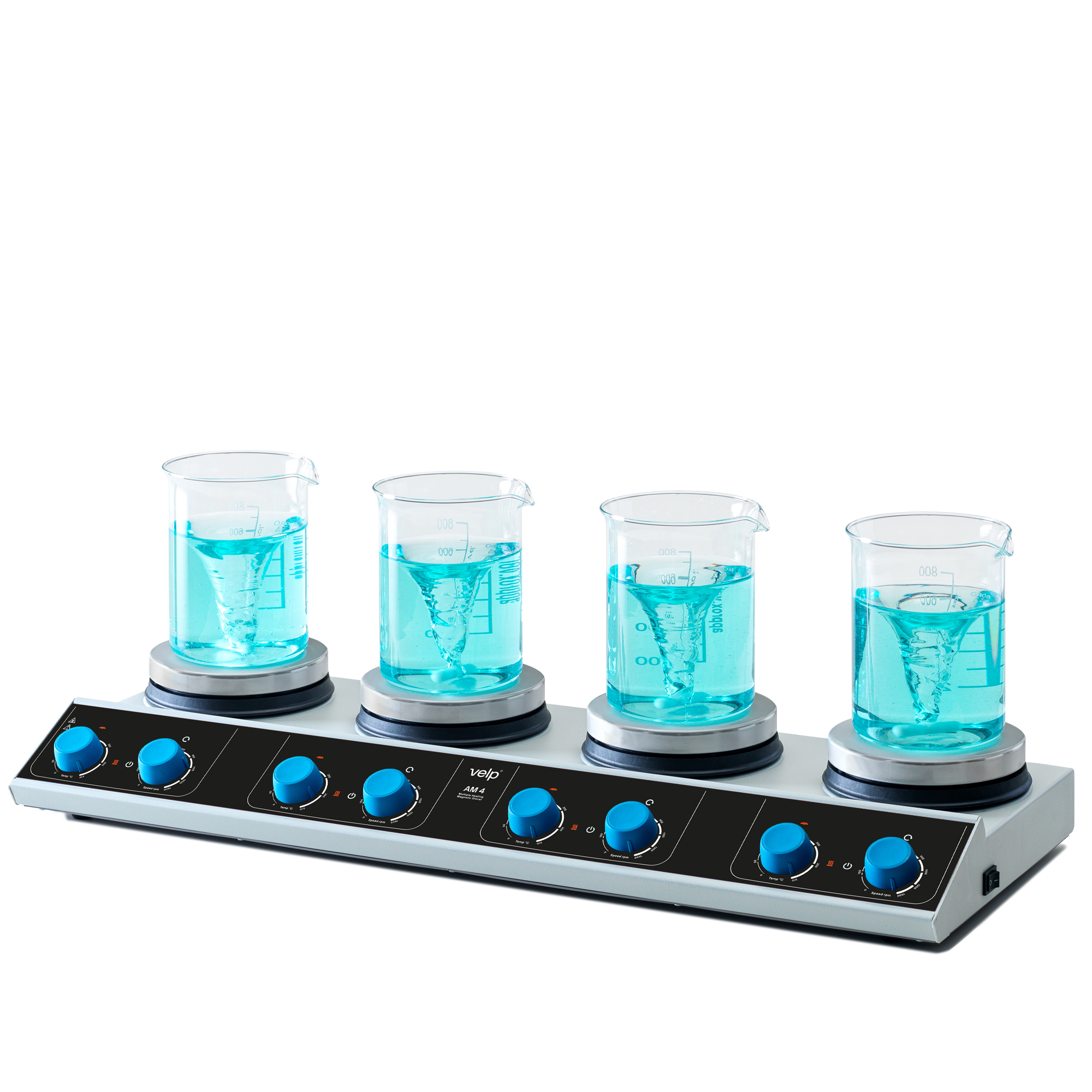 El agitador magnético con calefacción multiposición AM 4 de VELP Scientifica es una solución robusta, simple y confiable para aplicaciones de laboratorio que requieren procesar múltiples muestras en simultáneo.