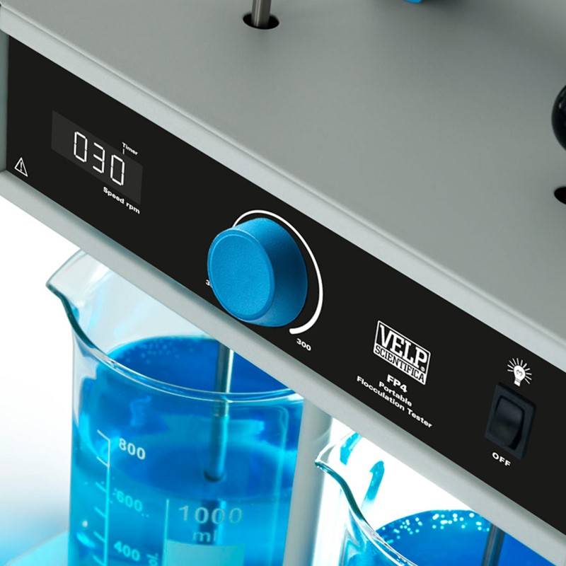 Ante esta necesidad, VELP desarrolló el floculador portátil FP4, adecuado especialmente para ensayos Jar-Test para la optimización de dosis de coagulantes para la separación de contaminantes en las proximidades de las plantas de depuración de aguas.