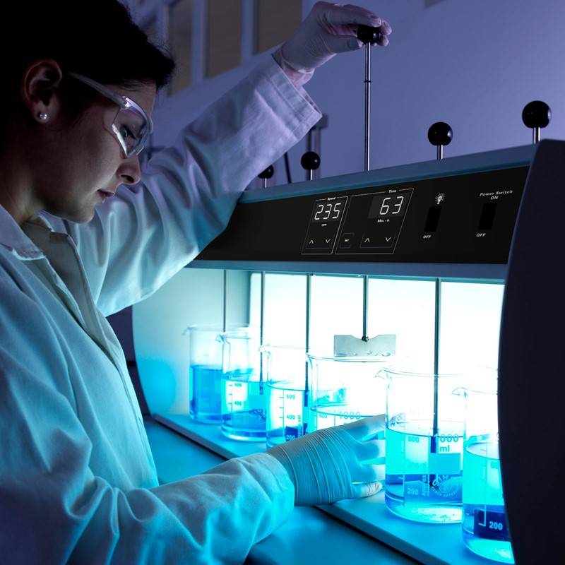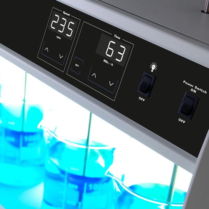 Está diseñado tanto para la optimización de la dosificación de coagulantes para la separación de contaminantes en plantas de tratamiento de aguas residuales (Jar-Test), como para ejecutar pruebas de lixiviación de sustancias tóxicas en residuos sólidos que se envían a centros de disposición final.