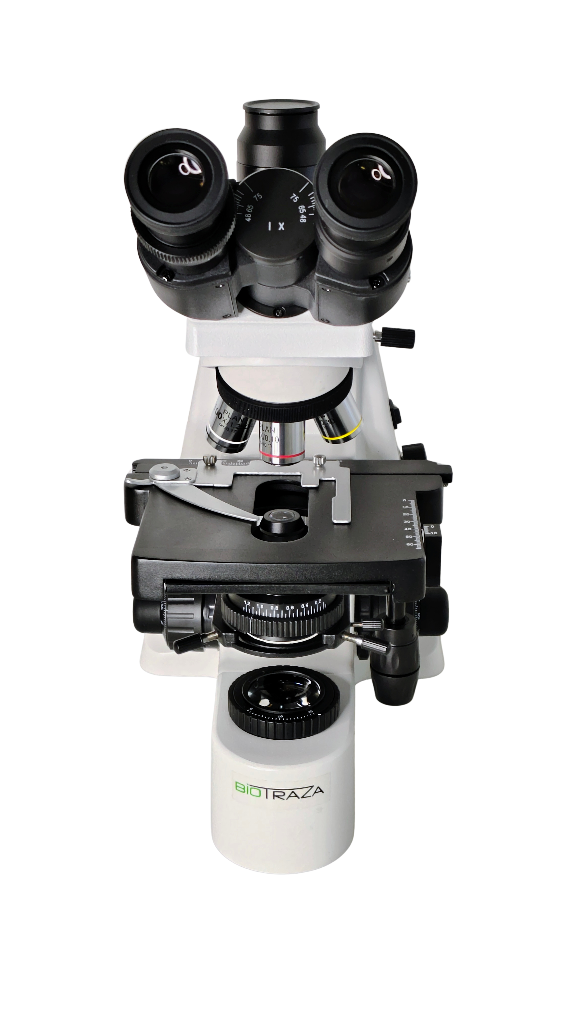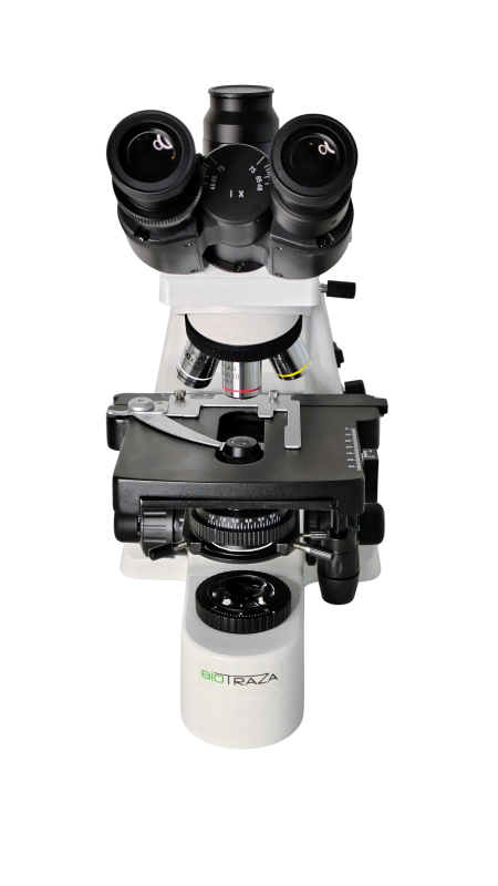 Microscopio Trinocular 'Biotraza' XSZ-146AT-PLAN, óptica Plana Corregida A Infinito, 4 Objetivos 1000x Aumentos, Revólver Cuádruple Invertido, Iluminación Koehler LED Regulable.