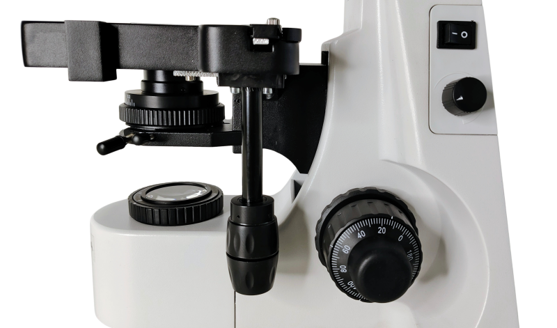 Mecanismo de enfoque macro y micrométrico coaxial bilateral, con mecanismo de piñon y cremallera. Escala de enfoque fino: 0.002mm.
