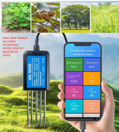 El sistema no requiere reactivos y permite realizar mediciones ilimitadas con gran facilidad de uso, lo que lo convierte en una herramienta ideal para agricultura de precisión, invernaderos, cultivos intensivos y estudios científicos. Además, su alta sensibilidad y rápida respuesta aseguran resultados consistentes y confiables en distintos tipos de suelo.