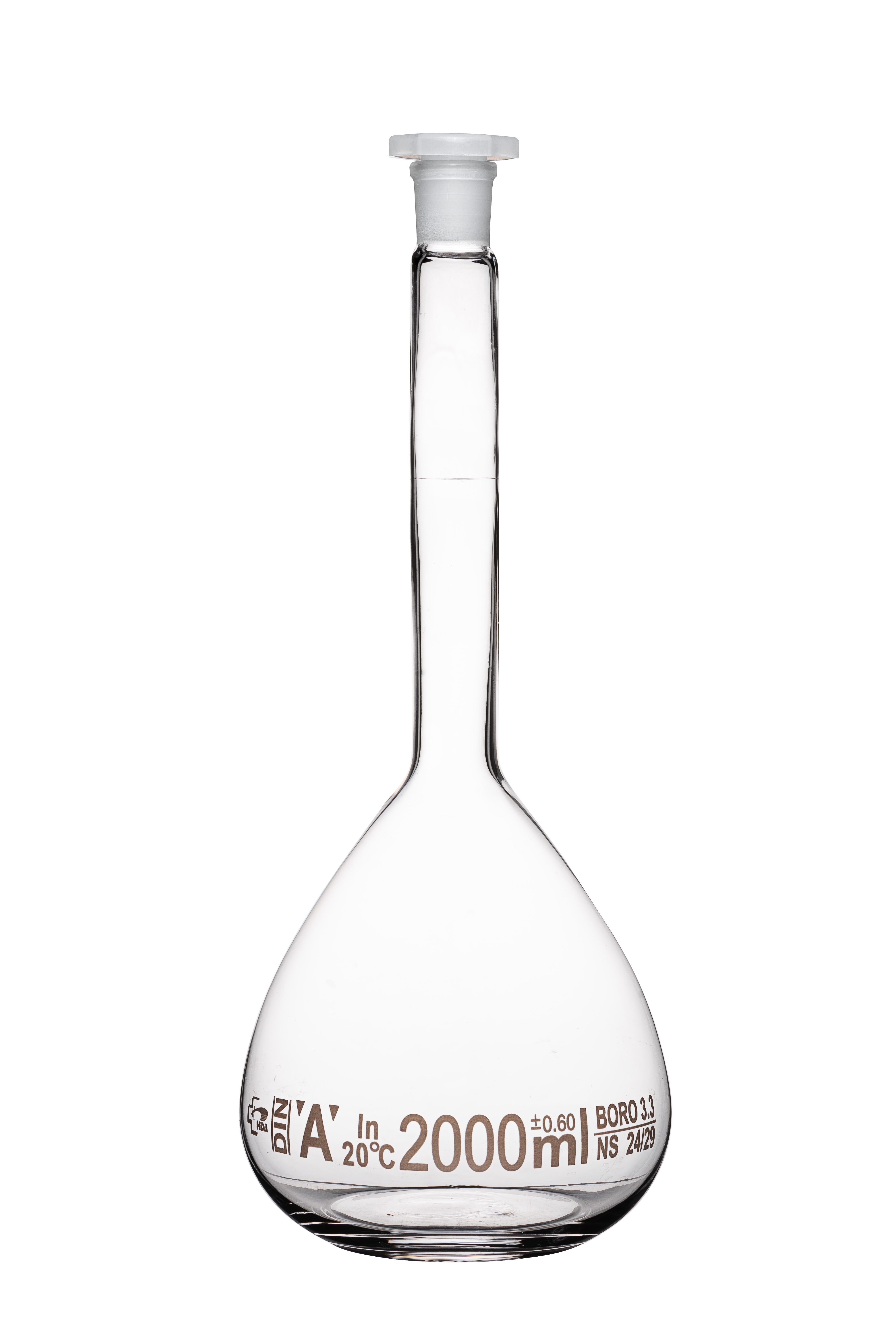 Matraz volumétrico aforado BORO 3.3 con tapa a presión incoloros x 25ml, clase A con certificado de lote