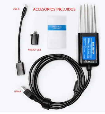 Sensor para Análisis de Suelo Directo 8 en 1 "Arcano Green" BSK-TUR-100 Conductividad, pH, Humedad, Nitrógeno, Fosforo, Potasio, Fertilidad y °C, Android USB-C
